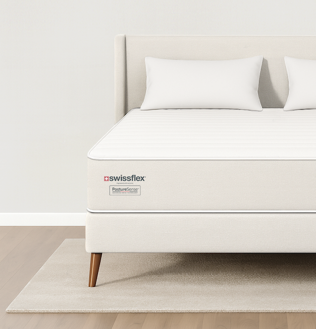 Os colchões Swissflex foram desenvolvidos para oferecer noites de sono frescas e saudáveis. Seus materiais respiráveis ajudam a regular a temperatura, mantendo você fresco no verão e aquecido no inverno.